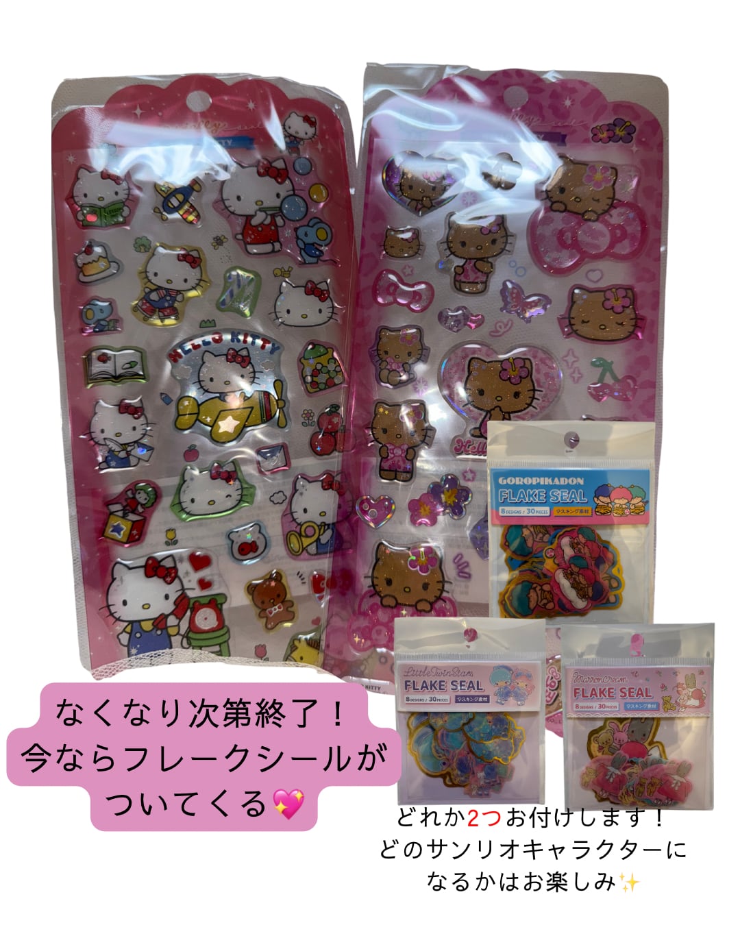 なくなり次第終了!!今ならドロップジェリーシールお買い上げでサンリオフレークシールが付いてくる!こちらの2枚セットの場合は2枚付いてきます!