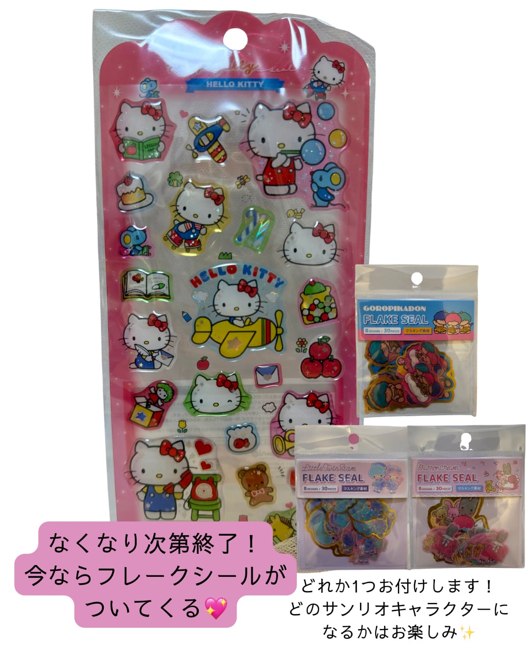 なくなり次第終了!!今ならドロップジェリーシールお買い上げでサンリオフレークシールが付いてくる!