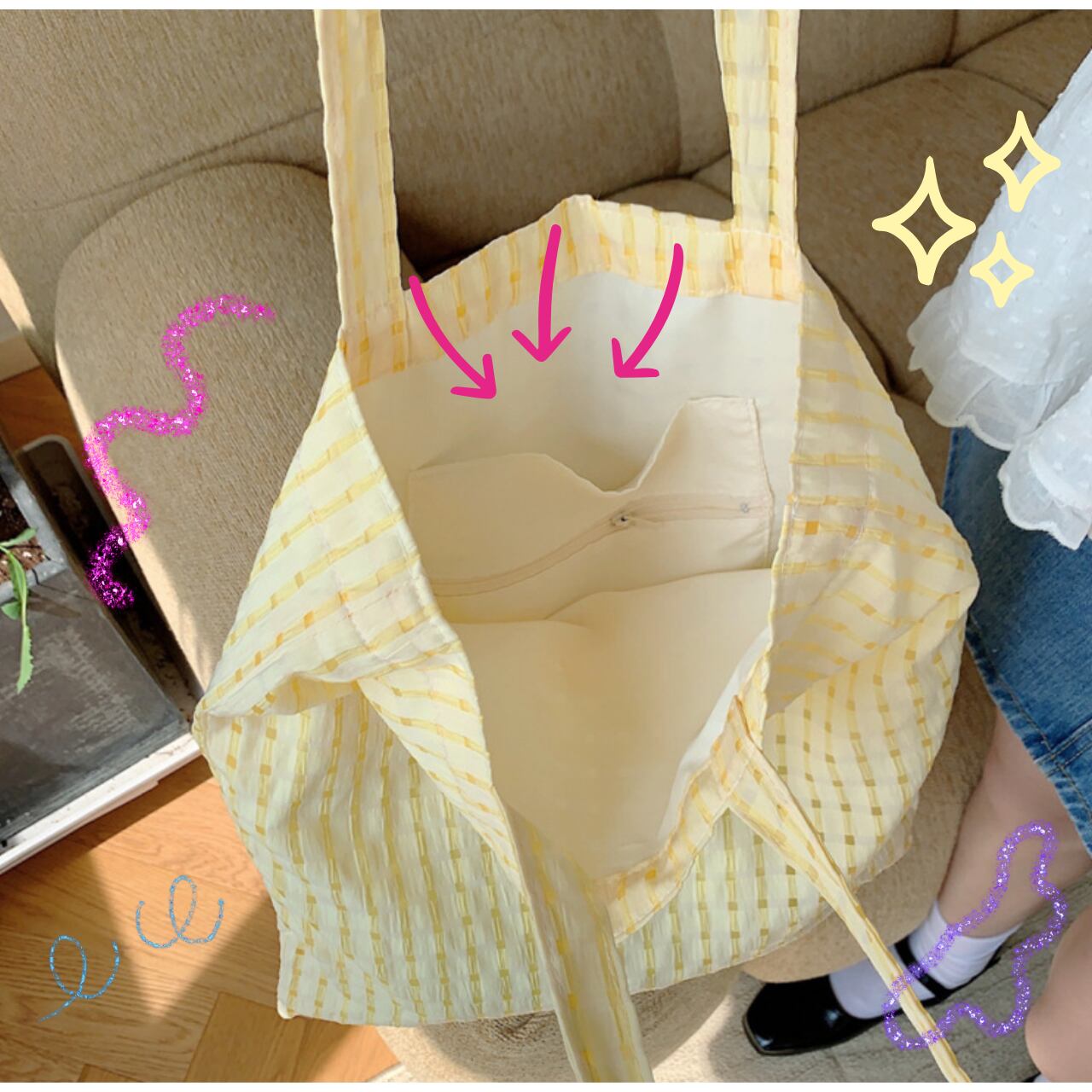 細々したものがバッグの中で散乱しにくい内ポケット付き♡