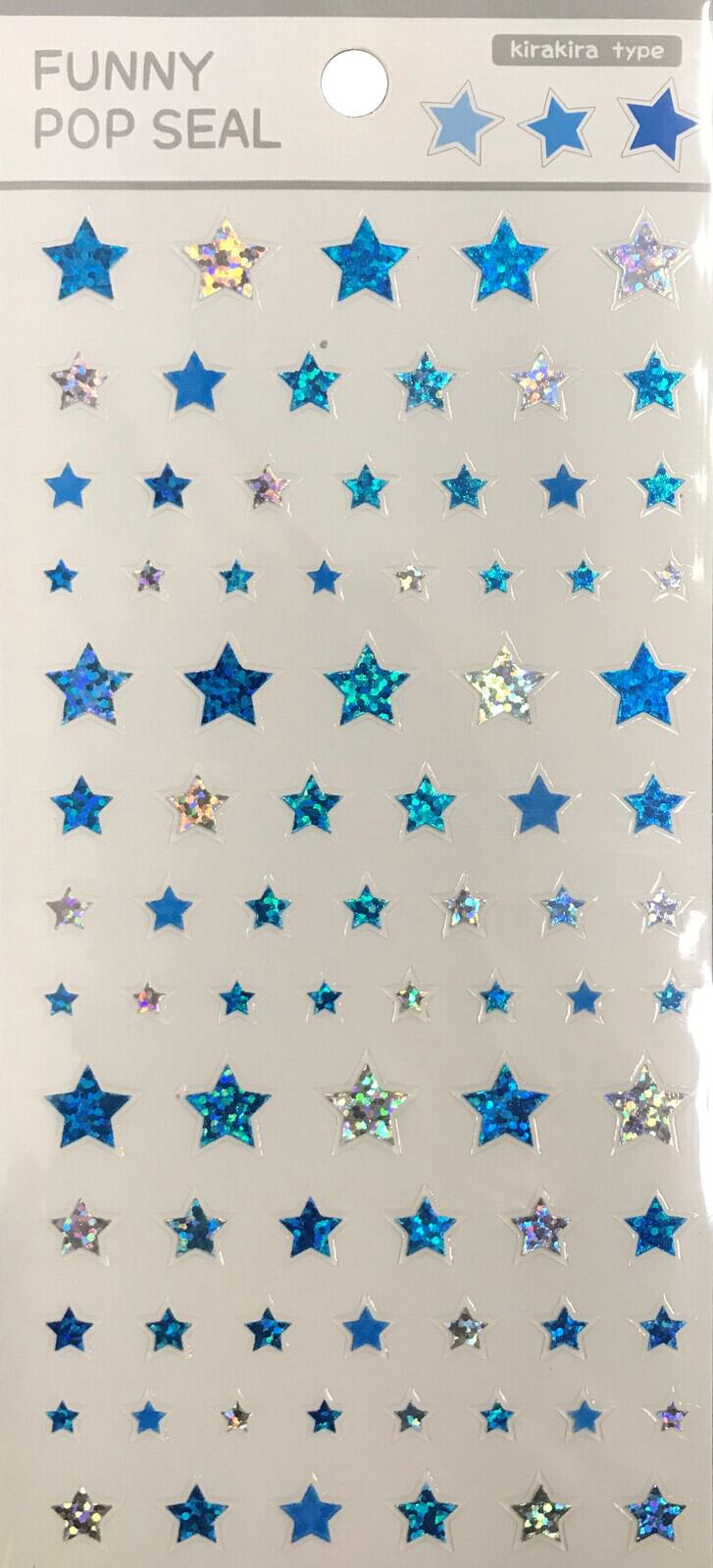 【ぺたぺたシールスター】 キラキラのホログラムがかわいい、星柄のシール! ブルー、シルバーやミニサイズの星が大容量で入っております。 冬の雪のデコレーションと一緒に貼ってもかわいくアレンジできます♪