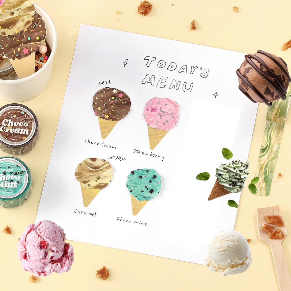 そのまま貼るも良し、アイスクリームを自分で作るも良しです◎