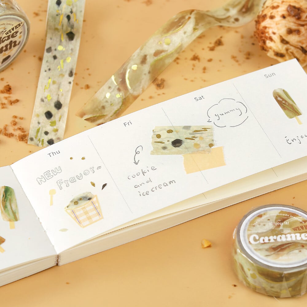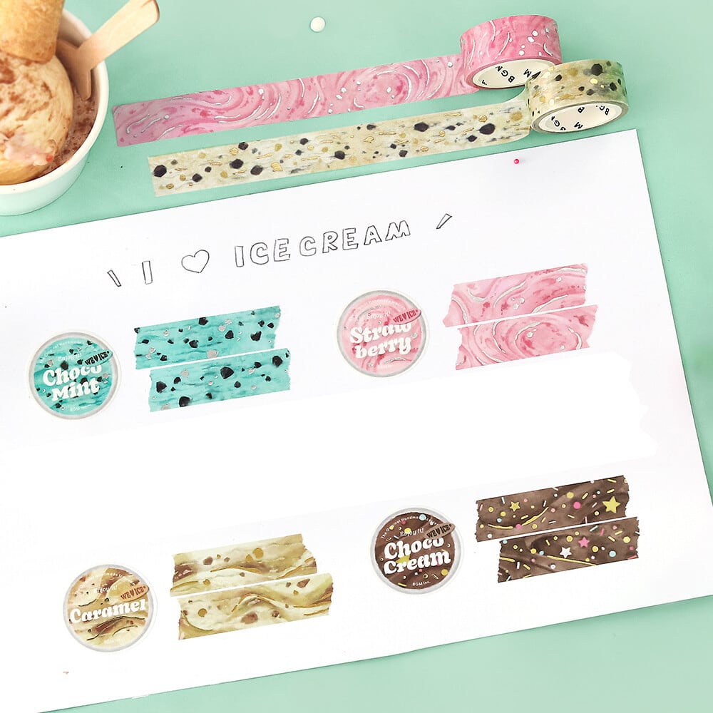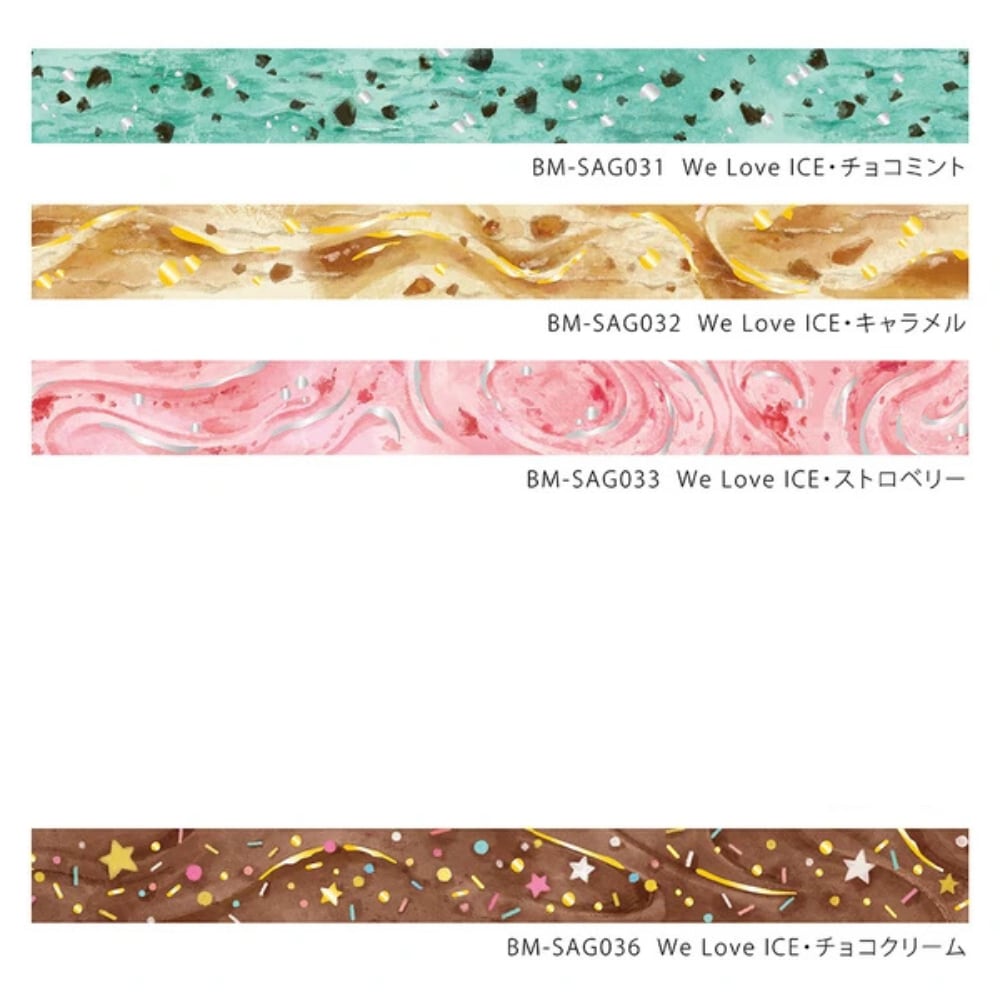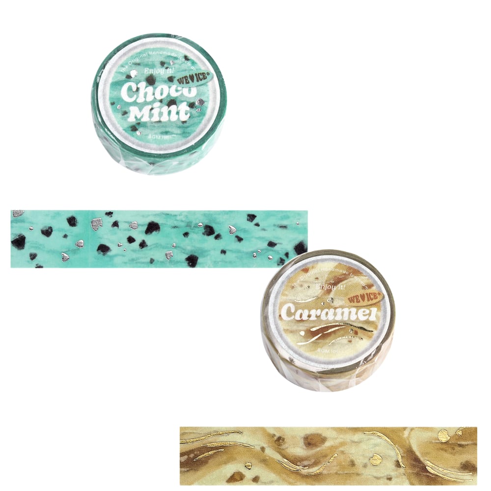 マスキングテープ×2 箔押し「We Love ICE」アイスクリーム(チョコミント キャラメル)